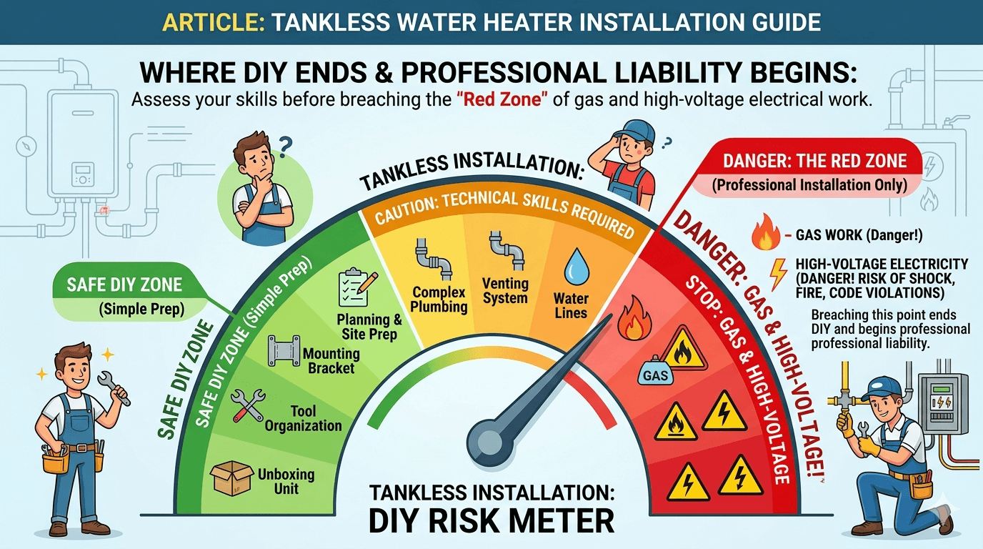 Selecting a tankless system is an investment in your home's long-term efficiency, but it requires respecting the physics of the system. We have seen far too many homeowners pay twice—once for the DIY attempt and once for the professional rescue. Whether you choose to tackle this yourself or hire a specialist, remember that a water heater is only as good as the infrastructure supporting it. Take the time to verify your GPM needs and electrical headroom today; your future self (and your laminate flooring) will thank you.